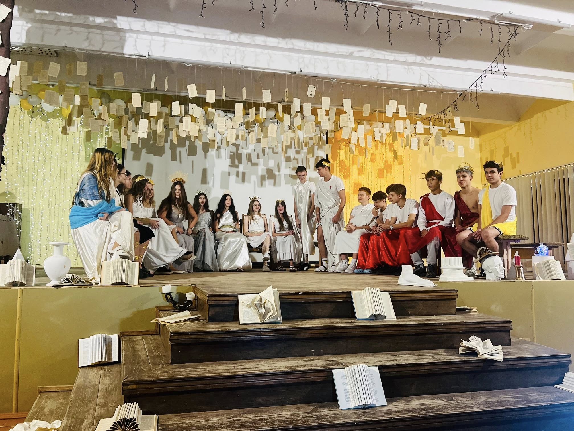 У цей день актова зала перетворилася на справжній античний Олімп, де боги й богині жартували, розповідали про шкільні будні та з любов’ю вітали всіх працівників закладу. Виступи, сценки, гумористичні діалоги та поетичні вітання створили неповторну атмосферу тепла, вдячності та святкового настрою.