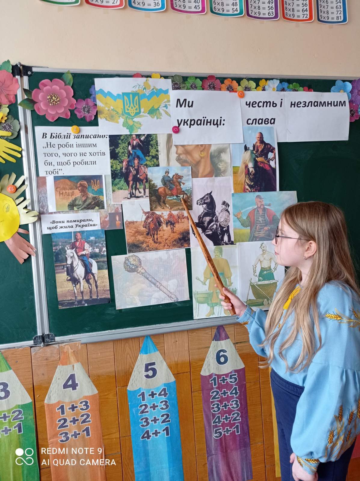Тож сьогодні вчителька початкових класів Клячук Оксана Петрівна зі своїм 4-Б класом відзначили триєдине свято: Покрови Пресвятої Богородиці, День козацтва, День наших захисників і захисниць